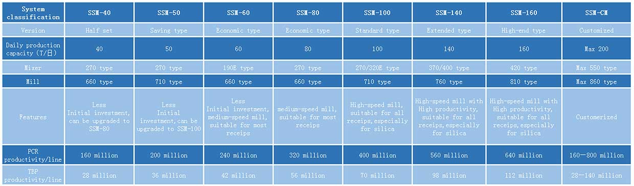 This system improves the quality andproductivity of rubber mixing. The long time of mixing in mills raises thedispersity of additives and chemicals, which improves stability and homogeneityof rubber materials. Furthermore, the abrasive resistance and rollingperformance of tires are improved.